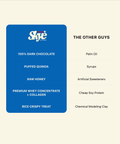 Skye Bars are the only pre-performance snack made entirely from whole food ingredients that athletes look forward to eating. Most energy/protein bars are packed with artificial sweeteners, gums, and chalky protein blends. We use real dark chocolate, raw honey, collagen, whey, and organic quinoa—no fillers, no junk.